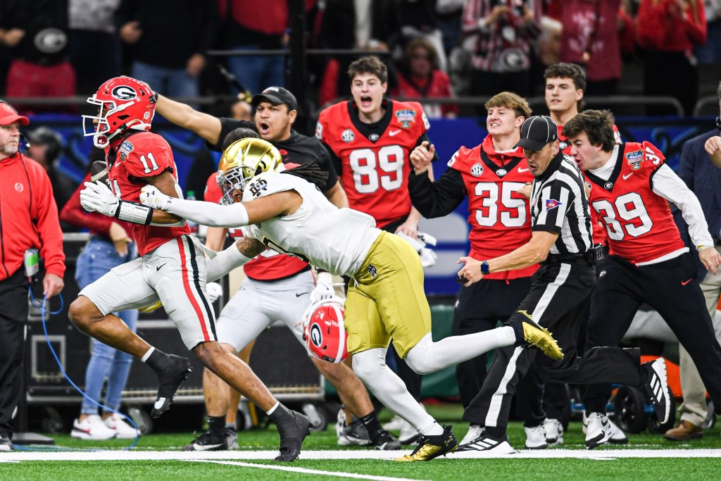 The rest was all Notre Dame and more mistakes from Georgia. A false start on 4th-and-1 on the opponent’s 42-yard line led to a turnover-on-downs the next play. On the other side of the ball, an offsides on 4th-and-1 late in the game kept the ball out of Stockton’s hands.